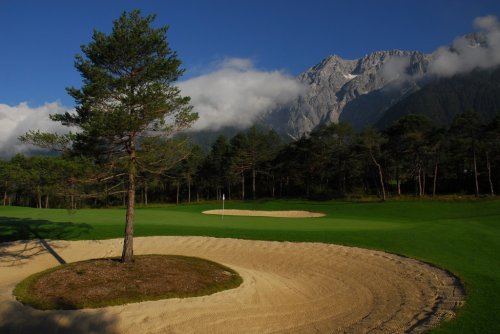 Auf ca. 70 ha hat der Golfarchitekt Keith Preston die 18 Spielbahnen harmonisch in den Föhrenwald geplant. Die breiten Fairways laden ein zu mächtigen Drives und bieten viele einmalige Fotomotive mit der Tiroler Bergkulisse im Hintergrund.Vor dem Abschlag 10 empfiehlt sich eine kurze Einkehr im halfwayhouse „Stöttlalm“. Wie ein Adlerhorst thront die urige aus 200 Jahre altem Holz erbaute Blockhütte auf dem Aussichtshügel. Das 360 Grad Panorama mit dem großen Teich im Vordergrund ist einzigartig.